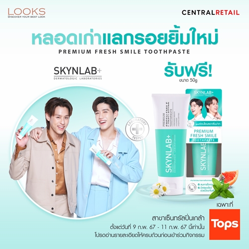 รับเลย ยาสีฟัน SKYNLAB Premium Fresh Smile ขนาด 50g เมื่อนำยาสีฟันที่ใช้แล้ว แบรนด์ใด ขนาดใดก็ได้มาแลก ที่ Tops สาขาเซ็นทรัลปิ่นเกล้า วันที่ 9 – 11 กุมภาพันธ์ 2567 เพื่อประชาสัมพันธ์สินค้าให้เป็นที่รู้จักมากยิ่งขึ้นและกระตุ้นยอดขายแบรนด์ SKYNLAB