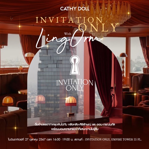 พบกับ หลิงหลิง-ศิริลักษณ์ คอง และ ออม-กรณ์นภัส เศรษฐรัตนพงศ์ เมื่อวันที่ 27 ตุลาคม 2567 ณ “Invitation Only” @ Empire Tower ชั้น 55 เพื่อกระตุ้นยอดขายผลิตภัณฑ์ Cathy Doll Give.Me.Museums Blooming Eye Palette, Cathy Doll Give.Me.Museums Blur Cheek Balm, Cathy Doll Give.Me.Museums Flower Drop Dewy Balm, Cathy Doll Cheers Around Trio Eye Palette, Cathy Doll Bounce Jelly Tint, Cathy Doll Trio Color Serum, Cathy Doll Nude Matte Blusher, Cathy Doll Skin Fit Jelly Blusher, Cathy Doll Mini Lip & Cheek Nude Matte Tint, Cathy Doll Wanna Shine Lipstick, Cathy Doll Air Relax Lip Blur, Cathy Doll Hyaluron Lip, Cathy Doll Minimal Lip, Cathy Doll Shiny Bear Lip, Cathy Doll Filler Lip, Cathy doll vit C water, Cathy Doll Glow Oil Tint, Cathy Doll Moistful Bear Lip Glaze, Cathy Doll cc lip serum color corrector, Cathy Doll Vitamin C Plumping Lip Oil, Cathy Doll 2% Hyaluron Lip Mask.