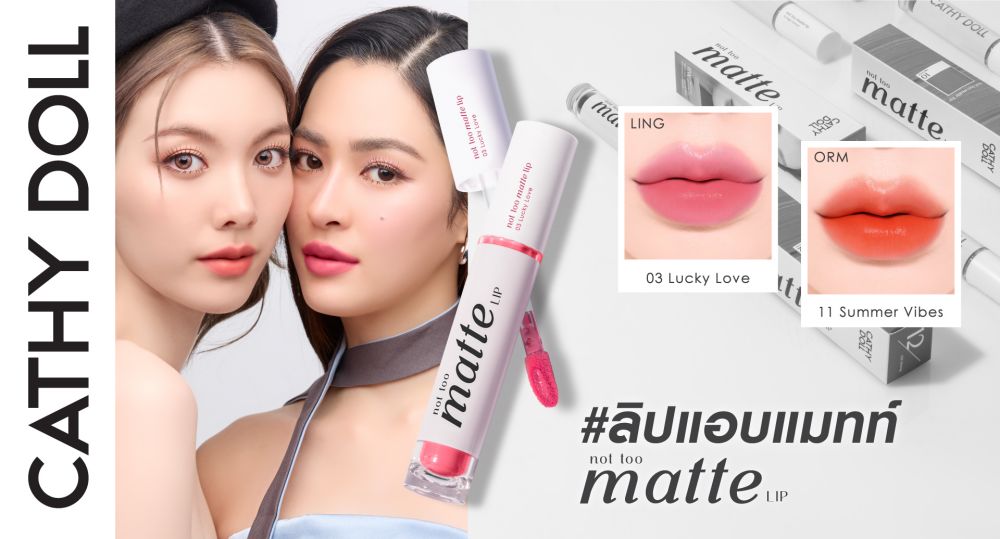 พรีเซ็นเตอร์ผลิตภัณฑ์ Cathy Doll ในหมวดผลิตภัณฑ์เครื่องสำอางที่ให้สีสันบนปากและแก้ม อาทิเช่น Cathy Doll x LingOrm Give.me.museums , Cathy Doll Not Too Matte Lip, Cathy Doll Bounce Jelly Tint, Cathy Doll Glow Oil Tint, Cathy Doll Filler Lip Booster, Cathy Doll Moistful Bear Lip Glaze, Cathy Doll Shiny Bear Lip Moist