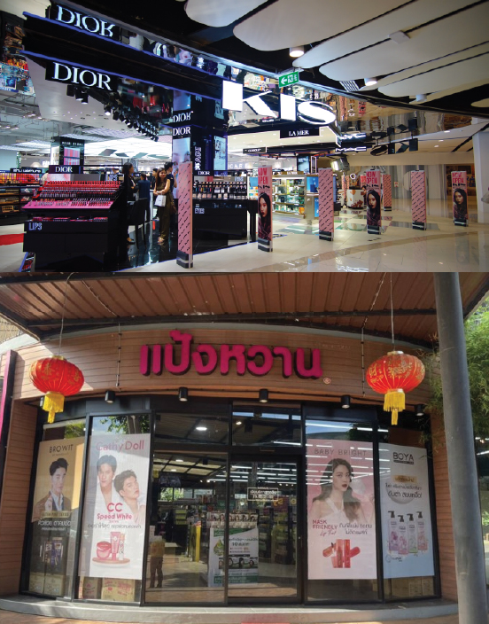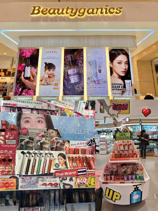จัดจำหน่ายสินค้าเครื่องสำอาง กลุ่มสินค้าดูแลผิว ดูแลเส้นผม และผลิตภัณฑ์อุปโภคบริโภคด้านความงามในรูปแบบต่างๆ และยา ซึ่งถือเป็นศูนย์รวมสินค้าความงามที่มีความทันสมัย มีกลุ่มสินค้าหลากหลายที่สามารถตอบสนองความต้องการของผู้บริโภคได้อย่างมีประสิทธิภาพ และสามารถเข้าถึงกลุ่มผู้บริโภคที่ตรงกับกลุ่มเป้าหมายได้เป็นอย่างดี ได้แก่ Watsons, Boots, Beautrium, EVEANDBOY, Tsuruha เป็นต้น และร้านค้ากลุ่มยา จำหน่ายยาและผลิตภัณฑ์เกี่ยวกับสุขภาพ เช่น อาหารเสริม เวชสำอางต่างๆ ได้แก่ I Care, eXtra Plus, Dr.pharma, LAB Pharmacy,Tops Care, Fascino เป็นต้น ซึ่งถือเป็นช่องทางขายที่ช่วยขยายตลาดไปสู่ลูกค้ากลุ่มใหม่ได้อีกช่องทางหนึ่ง
